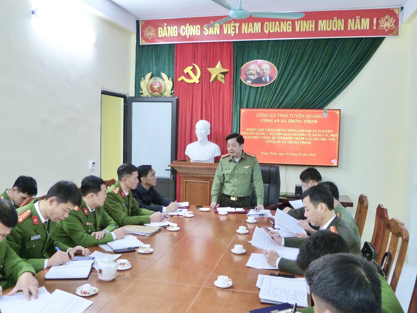 Tại các điểm đến kiểm tra, đại diện chỉ huy Công an các xã đã báo cáo kết quả triển khai công tác chuẩn bị bầu cử và phương án bảo đảm ANTT trên địa bàn. Theo đó, bám sát chỉ đạo của Giám đốc Công an tỉnh, lực lượng Công an cơ sở đã chủ động nắm chắc tình hình, quản lý chặt địa bàn, đối tượng; tăng cường phòng ngừa, đấu tranh với các loại tội phạm và hành vi vi phạm pháp luật; triển khai đồng bộ các biện pháp bảo đảm trật tự an toàn xã hội. Công tác tuyên truyền, phổ biến, giáo dục pháp luật về ANTT và cuộc bầu cử được thực hiện bằng nhiều hình thức phù hợp với đặc điểm từng địa bàn; chú trọng rà soát, quản lý nhân khẩu, hộ khẩu, bảo đảm thông tin cử tri “đúng, đủ, sạch, sống”, góp phần phục vụ tổ chức bầu cử đúng quy định, dân chủ, an toàn.