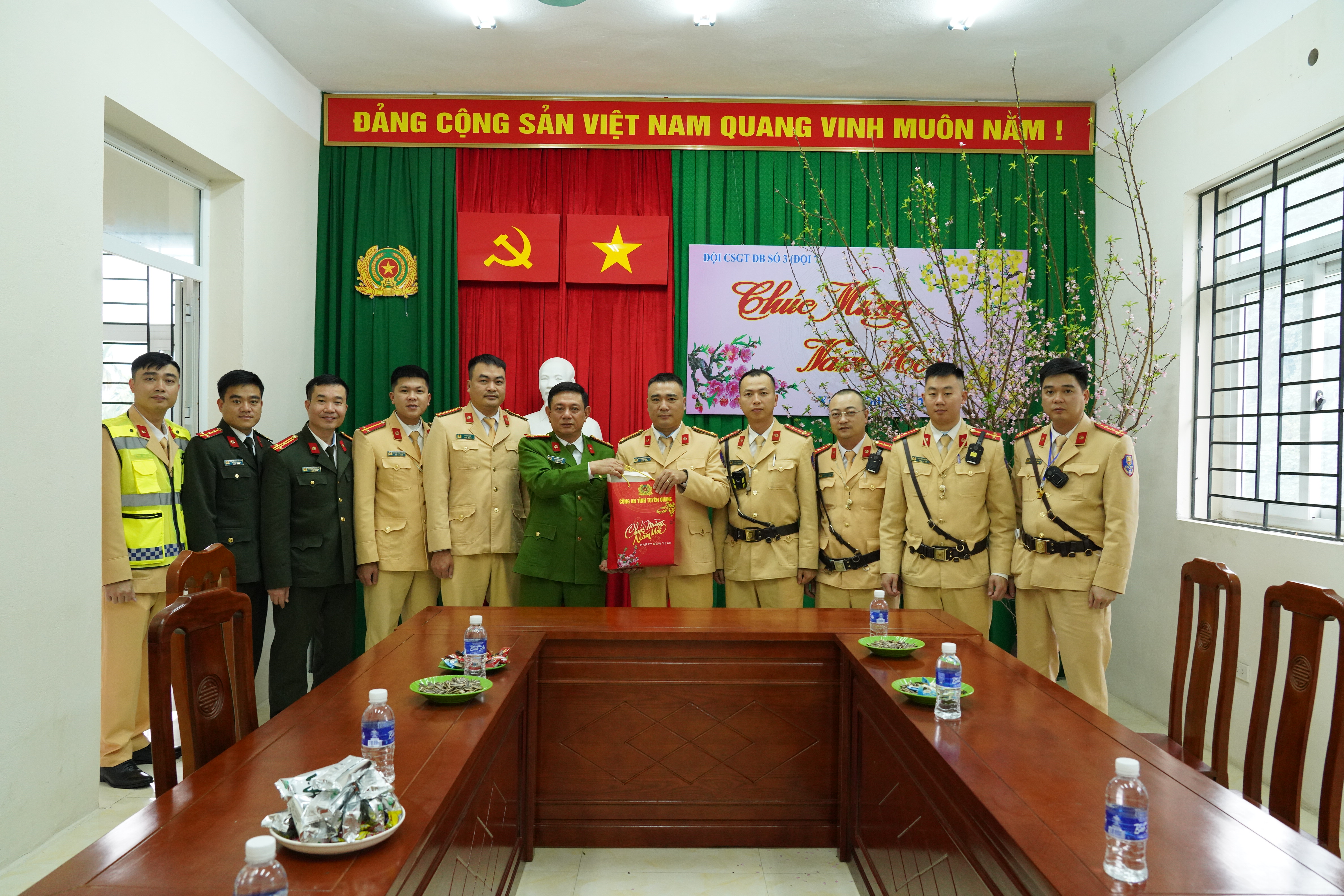 Nhân dịp đón Tết cổ truyền các đồng chí Phó Giám đốc Công an tỉnh đã tặng quà, chúc Tết cán bộ, chiến sĩ các đơn vị Công an trên địa bàn, chúc cán bộ, chiến sỹ các đơn vị sức khỏe, thành công, hoàn thành xuất sắc nhiệm vụ được giao, quyết tâm thực hiện thắng lợi nhiệm vụ bảo đảm an ninh quốc gia, giữ gìn trật tự, an toàn xã hội trên địa bàn, nhất là trong dịp Tết Nguyên đán Bính Ngọ 2026.