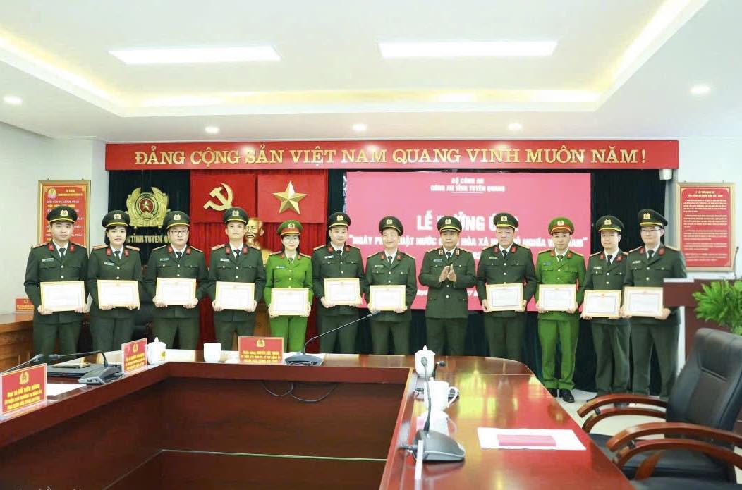 Tại điểm cầu Công an tỉnh, Giám đốc Công an tỉnh đã trao Giấy khen tổng kết phong trào thi đua thực hiện công tác pháp chế và cải cách hành chính, tư pháp trong lực lượng CAND năm 2025 và kỷ niệm 50 năm Ngày truyền thống của lực lượng Pháp chế CAND cho 04 tập thể và 07 cá nhân.