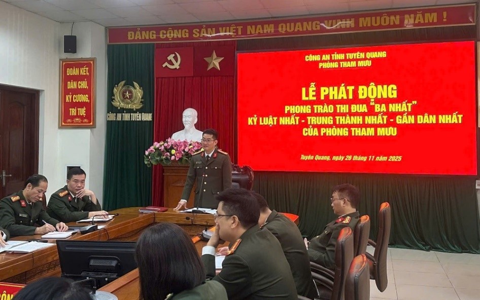 Quán triệt tinh thần đó, phát huy truyền thống vẻ vang, lực lượng tham mưu Công an tỉnh Tuyên Quang đã phát động phong trào thi đua “Ba nhất” đến 100% cán bộ, chiến sĩ, gắn việc thực hiện nhiệm vụ chính trị với đẩy mạnh phong trào nhằm tạo chuyển biến rõ nét về nhận thức và hành động, quyết tâm chuyển trạng thái mạnh mẽ từ thực hiện “trách nhiệm công vụ” sang “trách nhiệm công vụ - phục vụ”, từ “mệnh lệnh phục tùng” sang “mệnh lệnh phục tùng và chủ động đề xuất, kiến tạo phát triển”, góp phần nâng cao chất lượng, hiệu quả các mặt công tác gắn với mục tiêu “Tham mưu tốt nhất – Chuyển đổi số tốt nhất – Phục vụ tốt nhất”.