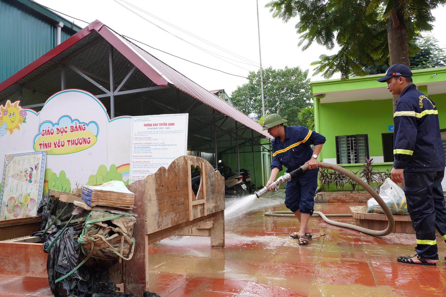 Sáng ngày 06/10/2025, Phòng Cảnh sát cơ động, Phòng Cảnh sát PCCC và CNCH, Phòng Cảnh sát giao thông Công an tỉnh Tuyên Quang tiếp tục tích cực hỗ trợ Trường mầm non Hoa Mai (phường Hà Giang 2) dọn dẹp, tổng vệ sinh, khắc phục hậu quả sau cơn bão số 10.