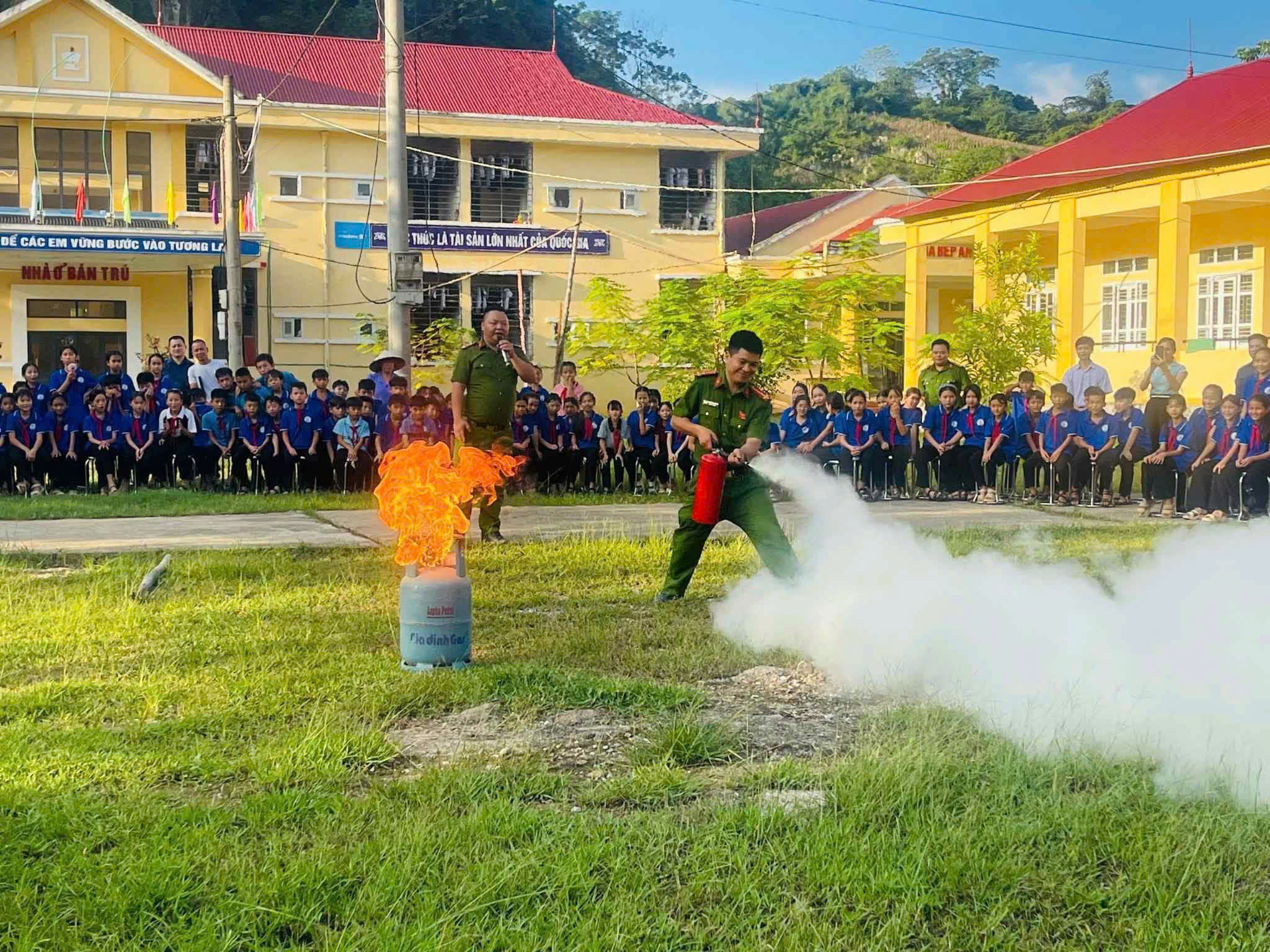 Tiếp đó, các em học sinh và giáo viên được phổ biến kiến thức pháp luật và kỹ năng phòng cháy, chữa cháy, cứu nạn cứu hộ. Qua những hình ảnh minh họa sinh động và phần thực hành trực tiếp, các em đã được trải nghiệm cách sử dụng bình chữa cháy, cách thoát hiểm an toàn khi có cháy nổ xảy ra.