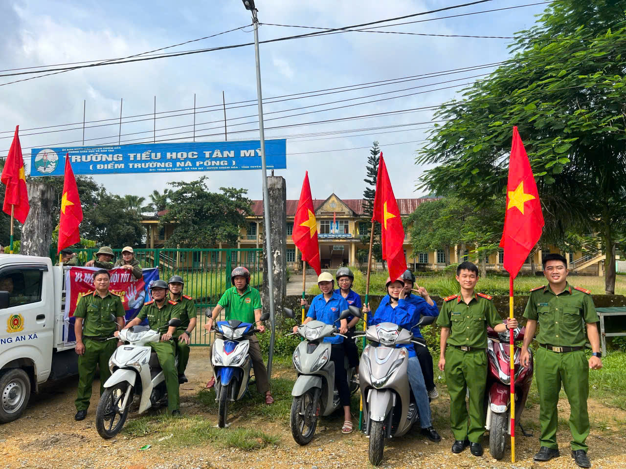 Phó trưởng Công an xã Lý Văn Hoà cùng đồng đội ra quân đợt cao điểm tấn công, trấn áp tội phạm, đảm bảo an ninh trật tự trên địa bàn