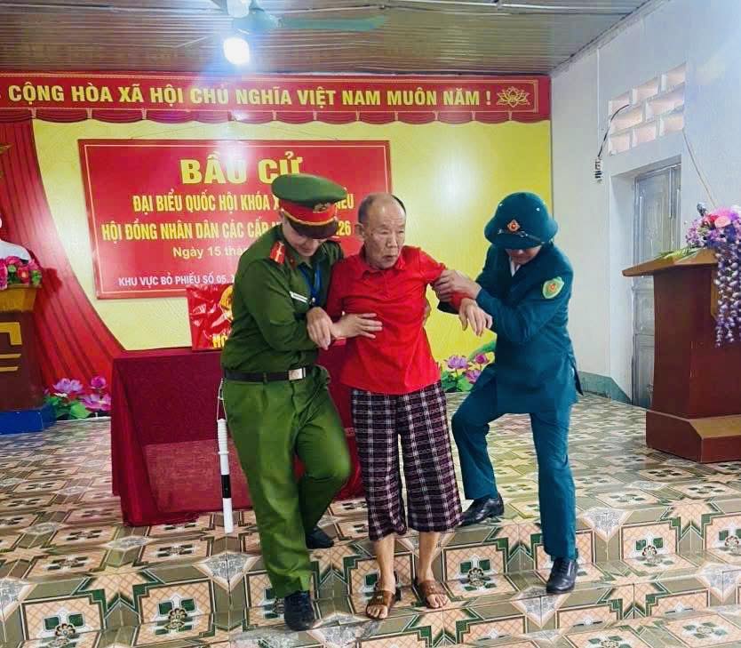Từ sáng sớm, các chiến sĩ Công an đã có mặt tại điểm bỏ phiếu, nắm danh sách cử tri cần hỗ trợ; chủ động đến tận nhà dìu đỡ, đưa các cụ già, người khuyết tật đến điểm bỏ phiếu an toàn. Nhiều cụ tuổi cao, đi lại khó khăn được các cán bộ Công an ân cần hỗ trợ, dìu từng bước vào khu vực bỏ phiếu, hướng dẫn các thủ tục cần thiết để thực hiện quyền công dân của mình.