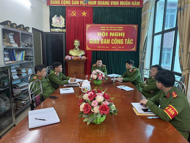 Công an xã Bạch Đích (huyện Yên Minh, tỉnh Hà Giang) tổ chức Hội nghị giao ban công tác sau khi triển khai thực hiện mô hình Công an 2 cấp.