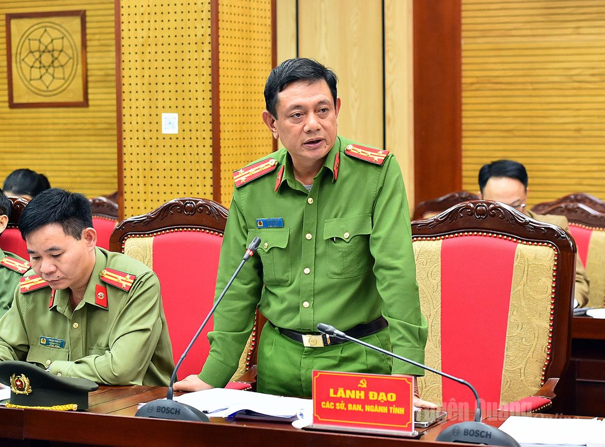 Lãnh đạo Công an tỉnh phát biểu tại hội nghị.