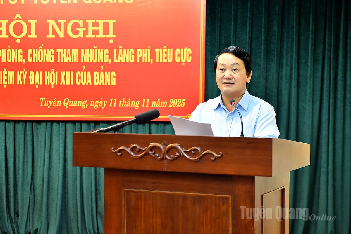 Đồng chí Bí thư Tỉnh ủy yêu cầu các cấp ủy, tổ chức đảng, chính quyền, cơ quan, đơn vị phải thể hiện sự quyết tâm, thực hiện đồng bộ tất cả các mặt về công tác PCTN, LP, TC với phương châm “Phòng quyết liệt - chống cương quyết, không có vùng cấm”.