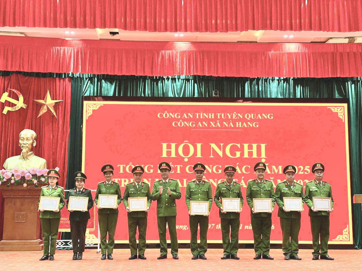 Ghi nhận kết quả của Công an xã Nà Hang trong việc triển khai thực hiện nhiệm vụ năm 2025, đồng chí Đại tá Hoàng Trọng Vỹ, Ủy viên Ban Chấp hành Đảng bộ, Phó Giám đốc Công an tỉnh đề nghị Công an xã Nà Hang tiếp tục nâng cao chất lượng công tác tham mưu, nắm chắc tình hình địa bàn; đấu tranh có hiệu quả với các loại tội phạm; bảo đảm an ninh trật tự phục vụ Đại hội Đảng toàn quốc lần thứ XIV và các sự kiện chính trị quan trọng. Đồng thời, Công an xã cần đẩy mạnh ứng dụng chuyển đổi số trong công tác; làm tốt công tác quản lý người nước ngoài; phòng chống buôn lậu, hàng giả, pháo nổ; góp phần giữ vững an ninh trật tự, tạo điều kiện để Nhân dân vui Xuân, đón Tết an toàn, bình yên.