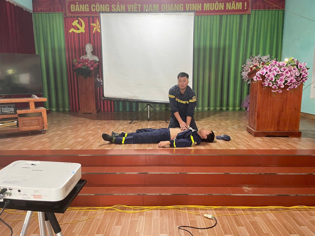 Lồng ghép trong buổi tập huấn, cán bộ Công an xã đã phổ biến, tuyên truyền Luật PCCC, các văn bản quy phạm pháp luật về PCCC và cứu nạn cứu hộ; Trách nhiệm PCCC của chủ hộ gia đình, hộ kinh doanh, cá nhân; Nguyên nhân gây cháy nổ, biện pháp phòng chống cháy nổ; Cách quản lý, bảo quản, bảo dưỡng phương tiện thiết bị PCCC. Đồng thời tổ chức cho các cá nhân tham gia tập huấn thực hành, trải nghiệm chữa cháy khí gas, chữa cháy giả định bằng khay xăng.