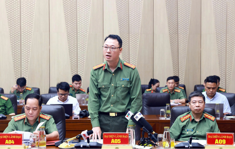 Thượng tá Triệu Mạnh Tùng, Phó Cục trưởng Cục An ninh mạng và phòng, chống tội phạm sử dụng công nghệ cao phát biểu tại Họp báo.