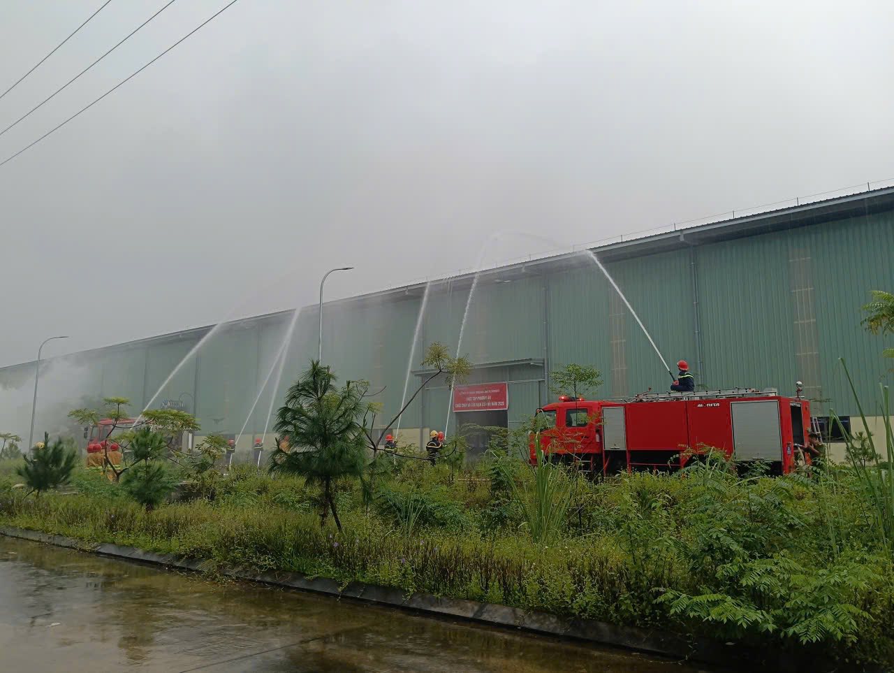 Kết thúc lớp huấn luyện, Đội PCCC và CNCH cơ sở của Công ty TNHH Greenhome Flooring đã phối hợp với lực lượng chữa cháy chuyên nghiêp tổ chức thực tập phương án chữa cháy và cứu nạn, cứu hộ.