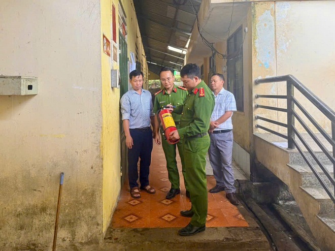 Đoàn kiểm tra do Công an xã chủ trì đã tiến hành kiểm tra thực tế các điều kiện đảm bảo an toàn PCCC như: Trách nhiệm của người đứng đầu cơ sở; hồ sơ quản lý, theo dõi hoạt động PCCC & CNCH của cơ sở; Kiểm tra thực tế về lối thoát nạn, hệ thống điện, nguồn nước, bảng nội quy, biển báo, hệ thống báo cháy, phương tiện chữa cháy, và các điều kiện an toàn khác; Đánh giá việc trang bị, bố trí các phương tiện chữa cháy, giải pháp thoát nạn; kiểm tra nhận thức của cán bộ, giáo viên trong công tác PCCC; Hướng dẫn, bổ sung biện pháp đảm bảo an toàn như ngăn cháy lan, thoát hiểm khẩn cấp, không gian thoáng, kiểm tra lực lượng PCCC tại chỗ… Đồng thời, hướng dẫn đại diện nhà trường cách sử dụng thiết bị chữa cháy và những lưu ý cần thiết trong công tác phòng ngừa và ứng phó khi xảy ra sự cố cháy nổ.