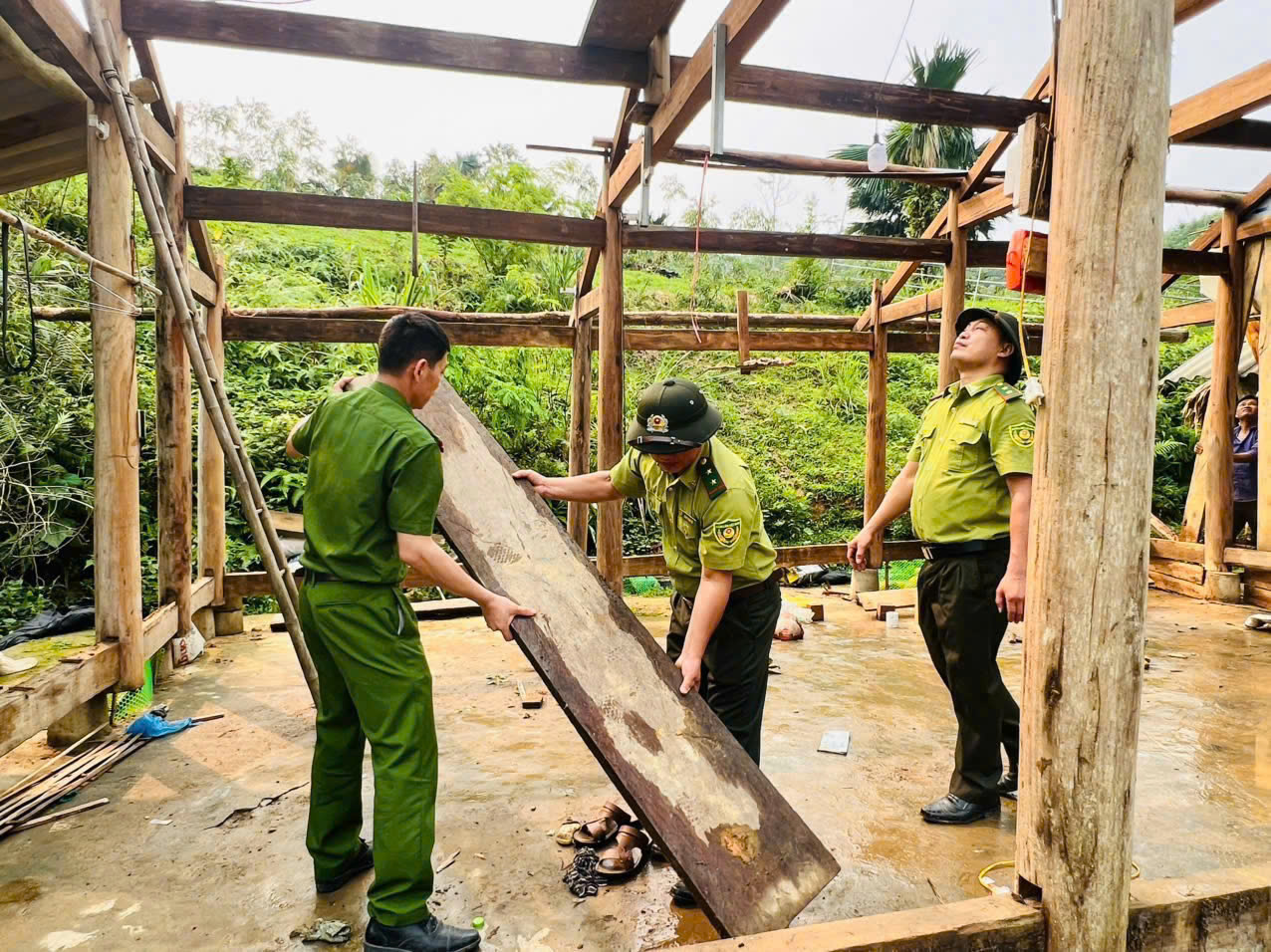 Trong điều kiện thời tiết còn diễn biến phức tạp, các cán bộ, chiến sĩ Công an xã đã không quản khó khăn, tích cực tham gia dọn dẹp, thu gom các vật liệu bị hư hỏng, gia cố lại mái nhà, đồng thời hỗ trợ sắp xếp, ổn định chỗ ở tạm thời, giúp gia đình sớm ổn định sinh hoạt.