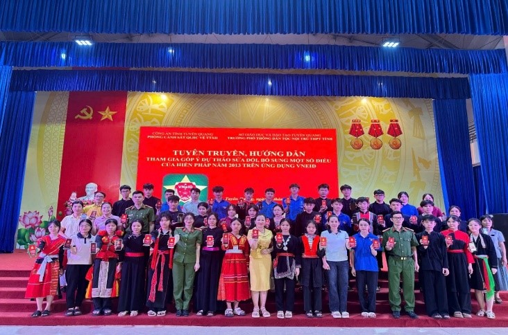 Phòng Cảnh sát QLHC về TTXH, Công an tỉnh thực hiện tuyên truyền Đề án 06 tại trường PTDTNT THPT tỉnh Tuyên Quang.
