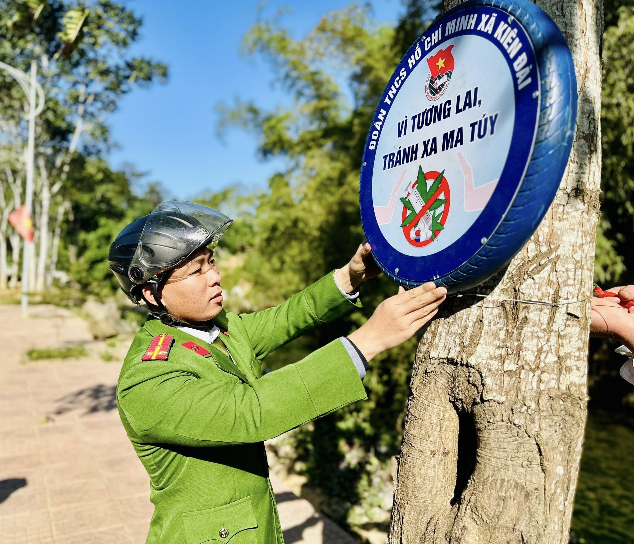 Tận dụng những lốp xe cũ, lực lượng đoàn viên, thanh niên xã và cán bộ Công an xã đã tiến hành làm sạch, sơn mới và gắn lên các tấm biển thông tin tuyên truyền với nội dung gần gũi, dễ nhớ, tạo cảnh quan môi trường xanh, sạch, đẹp. Đồng thời, truyền tải thông điệp hành động chống rác thải nhựa, tiết kiệm, tái sử dụng và tái chế lốp xe đã qua sử dụng và các nguyên vật liệu góp phần giảm thiểu tác hại đến môi trường sống.