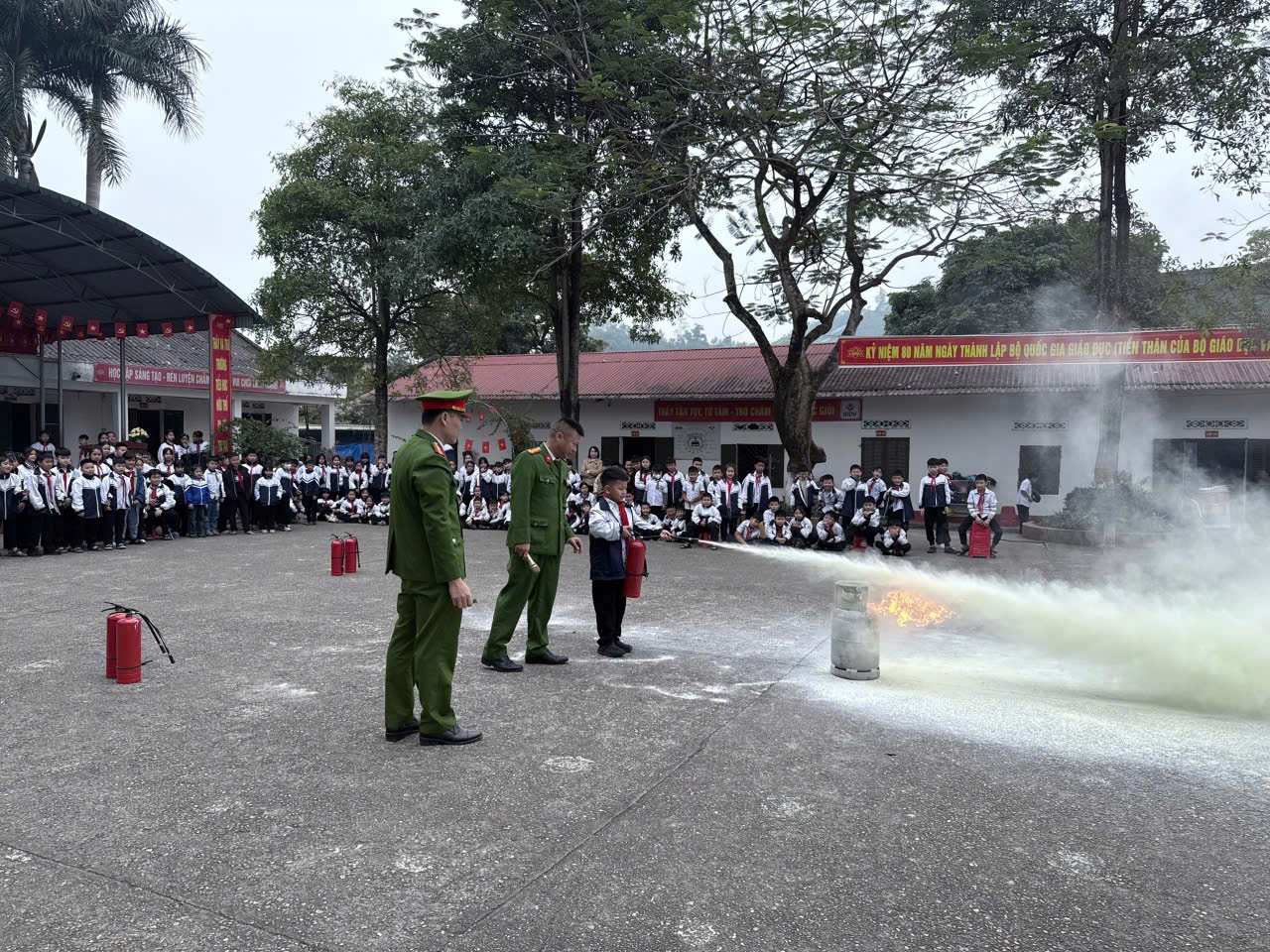 Tại buổi tuyên truyền trải nghiệm, các em học sinh được cán bộ Công an xã tuyên truyền pháp luật về quản lý vũ khí vật liệu nổ, công cụ hỗ trợ và pháo; hướng dẫn những kiến thức cơ bản về công tác phòng cháy, chữa cháy, cách thoát nạn an toàn khi gặp sự cố, kỹ năng sử dụng bình chữa cháy và dập tắt đám cháy nhỏ. Đặc biệt cán bộ giáo viên, học sinh đã trực tiếp tham gia trải nghiệm thao tác với bình chữa cháy, tạo ra không khí sôi nổi và bổ ích.