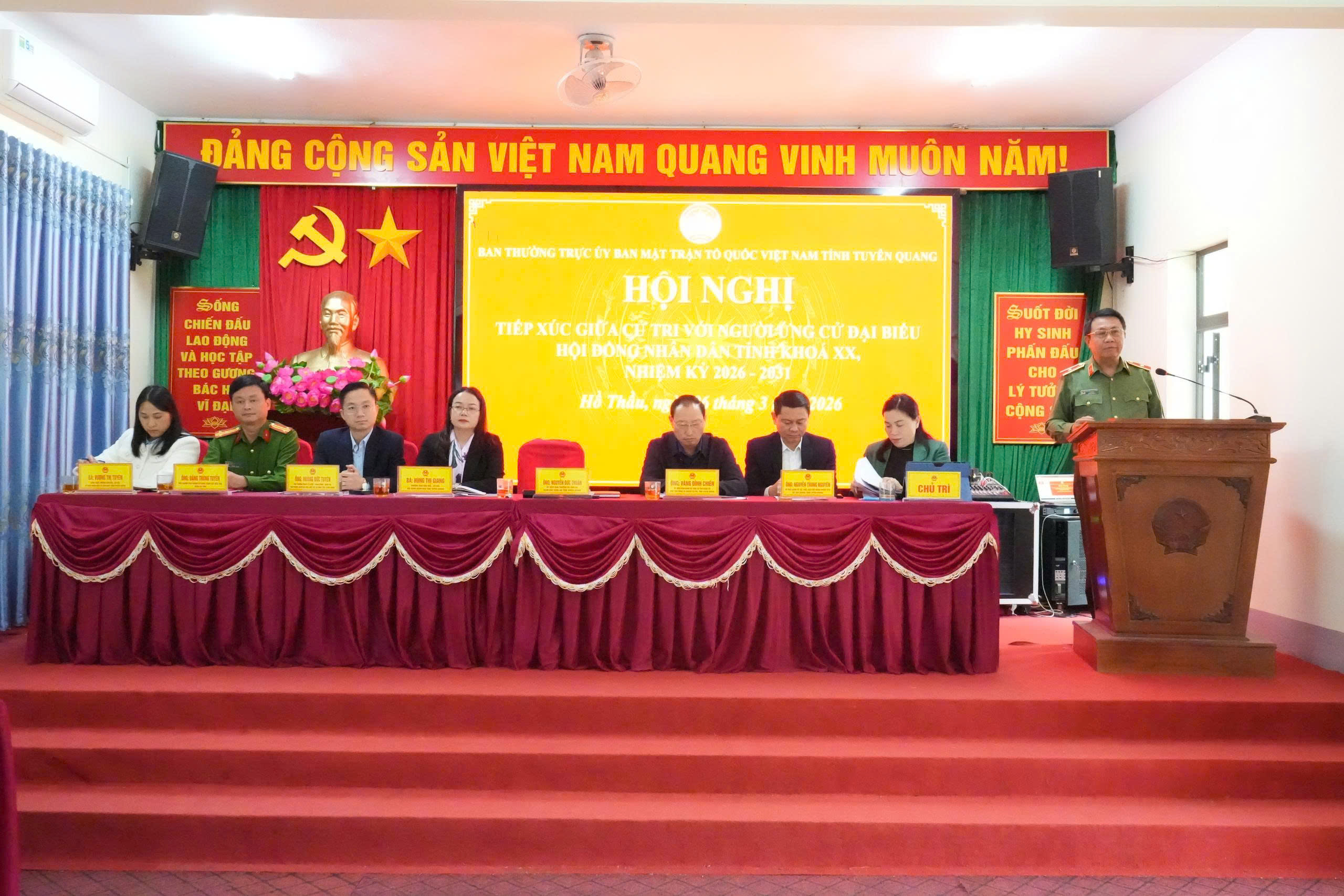 Thay mặt các ứng cử viên, Thiếu tướng Nguyễn Đức Thuận, Uỷ viên Ban Thường vụ Tỉnh uỷ, Giám đốc Công an tỉnh tỉnh đại diện các ứng cử viên khẳng định sẽ tiếp thu, tổng hợp ý kiến cử tri để hoàn thiện chương trình hành động, góp phần nâng cao chất lượng hoạt động của cơ quan dân cử, bảo đảm tiếng nói và nguyện vọng chính đáng của Nhân dân được phản ánh đầy đủ, kịp thời.