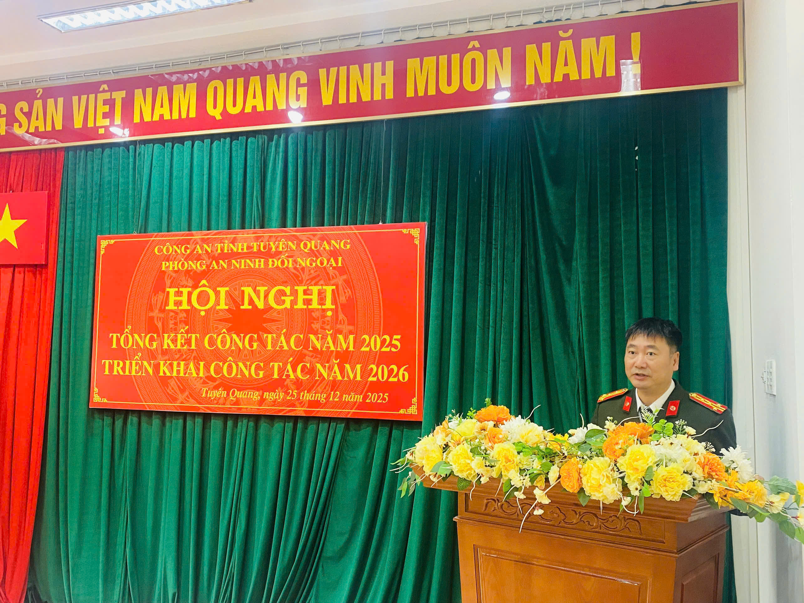 Trong năm 2025, Phòng An ninh đối ngoại đã chủ động nắm, phân tích, dự báo tình hình, kịp thời tham mưu, đề xuất với Đảng ủy, lãnh đạo Công an tỉnh trong công tác bảo đảm ANTT phục vụ tốt nhất công tác phát triển kinh tế - xã hội, đối ngoại của địa phương; triển khai các phương án, kế hoạch bảo đảm an ninh, an toàn các mục tiêu, công trình trọng điểm, các sự kiện chính trị, văn hóa, xã hội quan trọng, hoạt động của lãnh đạo Đảng, Nhà nước, các đoàn khách quốc tế đến thăm, làm việc tại địa phương; nâng cao chất lượng các mặt công tác nghiệp vụ cơ bản, công tác phát động phong trào toàn dân bảo vệ an ninh Tổ quốc; tích cực tham gia đấu tranh, phản bác các quan điểm sai trái, thù địch; chú trọng làm tốt công tác xây dựng Đảng, xây dựng lực lượng; lãnh đạo Đoàn Thanh niên, Hội phụ nữ tổ chức nhiều hoạt động thiết thực, hiệu quả.