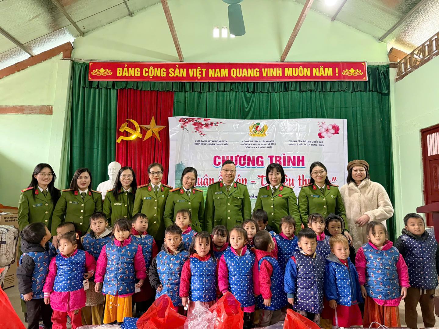 Tại chương trình, Ban Tổ chức đã trao tặng 01 máy lọc nước, 25 chăn bông, 20 thảm đệm, 240 áo phao ấm, 150 mũ len, 50 áo dạ, 90 áo dài Tết cho học sinh của nhà trường, góp phần giúp các em có thêm điều kiện đảm bảo sinh hoạt, giữ ấm trong giá lạnh mùa đông, vui vẻ hân hoan trong không khí Tết đến Xuân về mừng năm mới sang. Đồng thời, Phòng Cảnh sát Quản lý hành chính về trật tự xã hội đã tiếp nhận hơn 2.000 áo ấm từ Hội phụ nữ - Đoàn thanh niên Cục Cảnh sát Quản lý hành chính về trật tự xã hội, Trung tâm dữ liệu quốc gia để tiếp tục tổ chức, gửi trao tặng tới học sinh có hoàn cảnh khó khăn tại 21 điểm trường khác trên địa bàn tỉnh Tuyên Quang. Tổng giá trị các phần quà trên 150 triệu đồng.