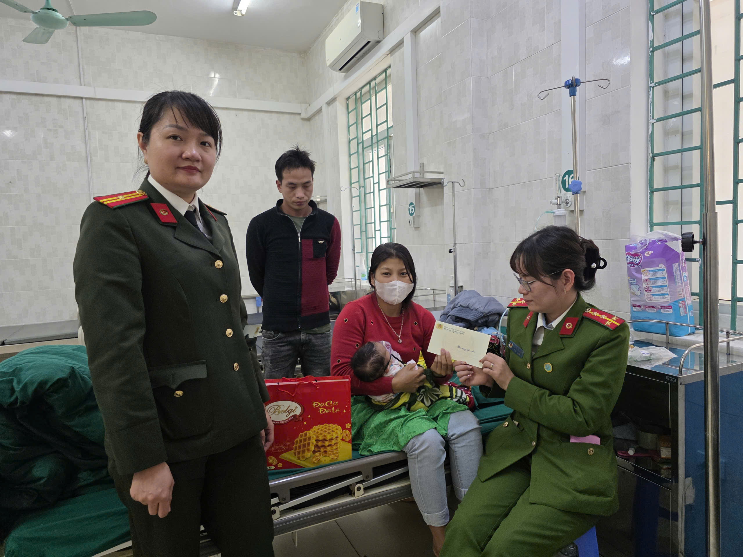 Tại đây, Công an xã đã trao tặng 02 suất quà cho công dân trên địa bàn và 15 suất quà cho các bệnh nhân tại khoa Nhi và Khoa Hồi sức tích cực.