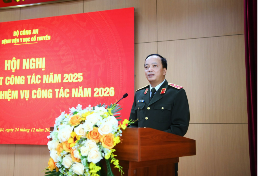 Chiều 24/12/2025, tại Hà Nội, Trung tướng Đặng Hồng Đức, Thứ trưởng Bộ Công an đến dự và phát biểu chỉ đạo tại Hội nghị tổng kết công tác năm 2025, triển khai nhiệm vụ công tác năm 2026 của Bệnh viện Y học cổ truyền Bộ Công an.