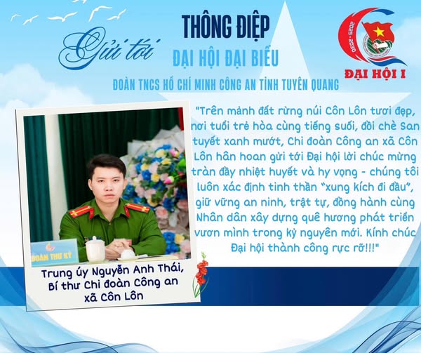 ĐỒNG CHÍ THƯỢNG TÁ CAO VĂN TOẢN, TRƯỞNG PHÒNG CÔNG TÁC CHÍNH TRỊ, CÔNG AN TỈNH TUYÊN QUANG - NGUYÊN TRƯỞNG BAN CÔNG TÁC THANH NIÊN CÔNG AN TỈNH HÀ GIANG (CŨ) GỬI TỚI ĐẠI HỘI