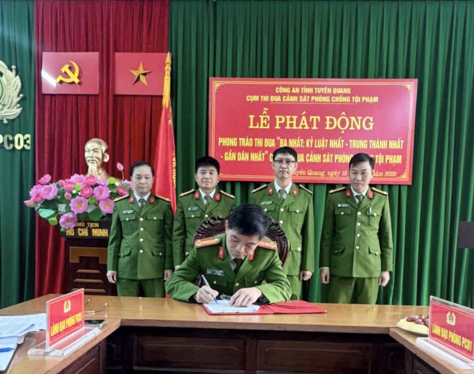 Trong không khí thi đua sôi nổi của toàn Đảng, toàn dân, toàn quân hướng tới Đại hội đại biểu toàn quốc lần thứ XIV của Đảng và thực hiện Nghị quyết Đại hội Đảng bộ Công an Trung ương lần thứ VIII, nhiệm kỳ 2025-2030, ngày 15/12/2025, Cụm thi đua Cảnh sát phòng chống tội phạm Công an tỉnh Tuyên Quang tổ chức Lễ phát động phong trào thi đua “Ba nhất: Kỷ luật nhất – Trung thành nhất – Gần dân nhất”.