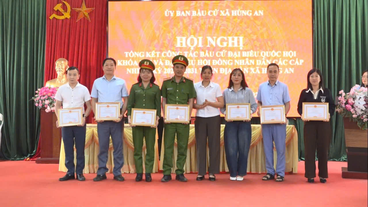 CÔNG AN XÃ HÙNG AN ĐƯỢC KHEN THƯỞNG VÌ CÓ THÀNH TÍCH TRONG CÔNG TÁC BẢO ĐẢM AN NINH AN TOÀN BẦU CỬ CÁC CẤP