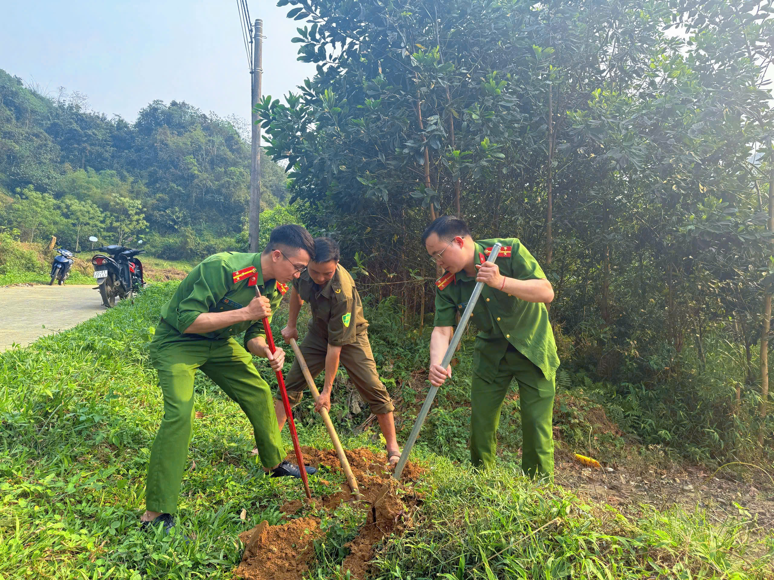 CÔNG AN XÃ NHỮ KHÊ PHỐI HỢP KHỞI CÔNG CÔNG TRÌNH ĐƯỜNG GIAO THÔNG NÔNG THÔN TẠI THÔN CỐC RẾ, XÃ THÀNG TÍN
