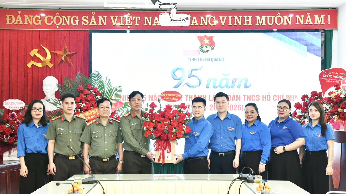 Nhân kỷ niệm 95 năm Ngày thành lập Đoàn Thanh niên Cộng sản Hồ Chí Minh (26/3/1931 - 26/3/2026), thay mặt Đảng uỷ, lãnh đạo Công an tỉnh, đồng chí Đại tá Lục Thế Hưng, Phó Bí thư Đảng ủy, Phó Giám đốc Công an tỉnh đã đến thăm, tặng hoa và chúc mừng Tỉnh đoàn Tuyên Quang.