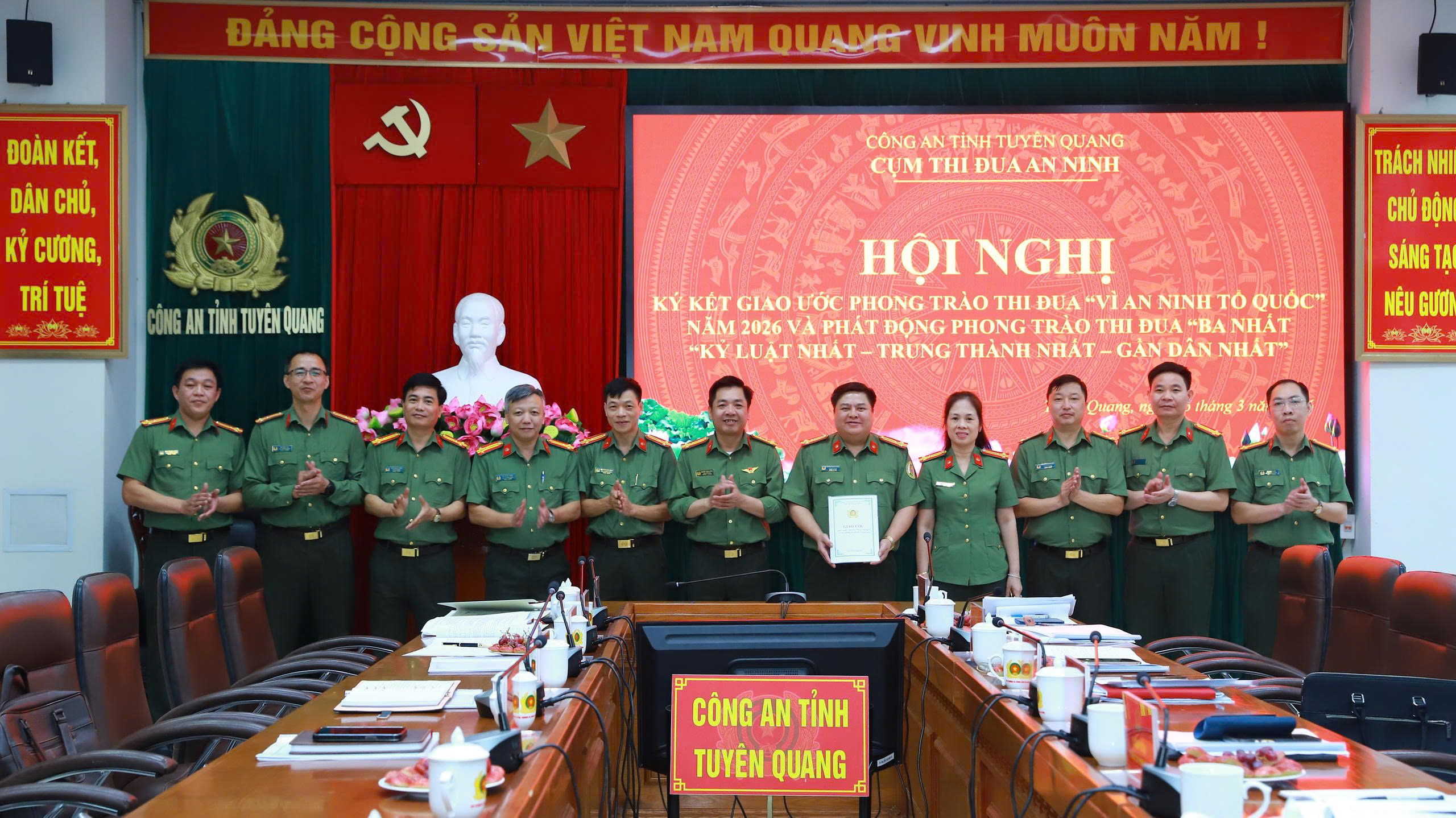 Thực hiện phong trào thi đua “Vì an ninh Tổ quốc” năm 2026 trong Công an tỉnh Tuyên Quang, ngày 23/3/2026, Cụm thi đua Công an các xã, phường đã tổ chức Hội nghị ký giao ước thi đua, triển khai công tác thi đua khen thưởng và phát động phong trào thi đua “Ba nhất”. Đồng chí Đại tá Lục Thế Hưng, Phó Bí thư Đảng uỷ, Phó Giám đốc Công an tỉnh dự tại Cụm thi đua số 13 Công an xã: Tân Quang, Đồng Tâm, Liên Hiệp, Bằng Hành, Bắc Quang, Hùng An, Vĩnh Tuy, Đồng Yên và Cụm thi đua số 14 Công an xã: Tiên Yên, Xuân Giang, Bằng Lang, Quang Bình, Yên Thành, Tân Trịnh, Tiên Nguyên.