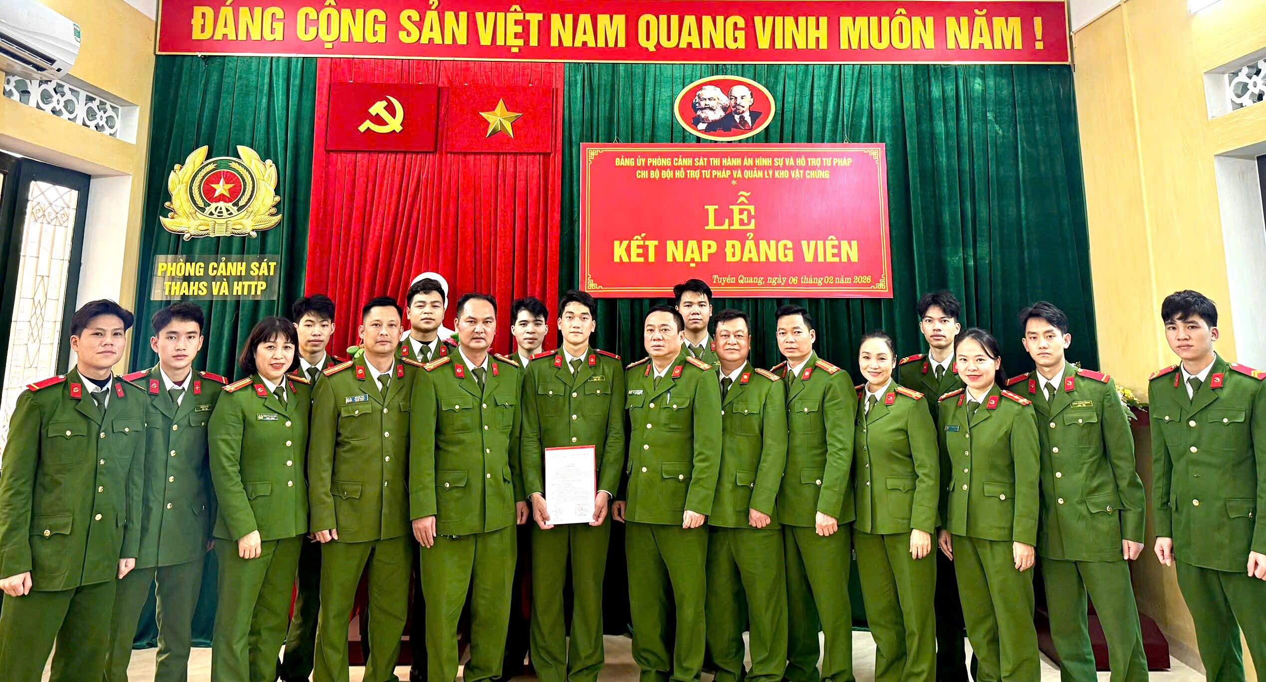 Ngày 06/02/2026, Chi bộ Đội Hỗ trợ tư pháp và quản lý kho vật chứng, Phòng Cảnh sát thi hành án hình sự và hỗ trợ tư pháp Công an tỉnh đã long trọng tổ chức Lễ kết nạp Đảng viên cho 01 chiến sĩ, quần chúng ưu tú là người dân tộc thiểu số nơi địa đầu Tổ quốc vượt khó đi lên.
