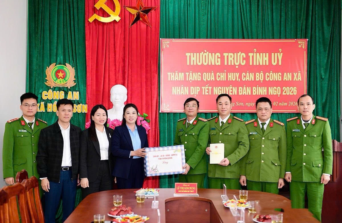 PHÓ BÍ THƯ THƯỜNG TRỰC TỈNH ỦY LÊ THỊ KIM DUNG THĂM, ĐỘNG VIÊN, TRAO QUÀ TẾT TẠI CÔNG AN XÃ HỒNG SƠN